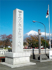 雪囲いの前の松尾芭蕉銅像を携帯カメラに納めて一句